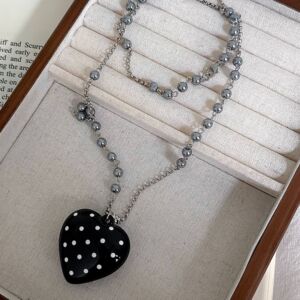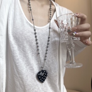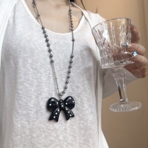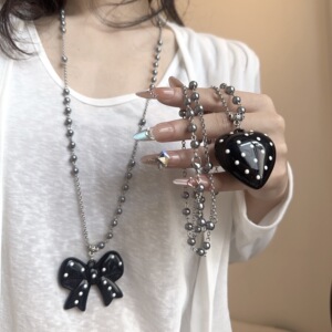 韩系ins小众设计感黑色波点蝴蝶结项链女简约百搭长链