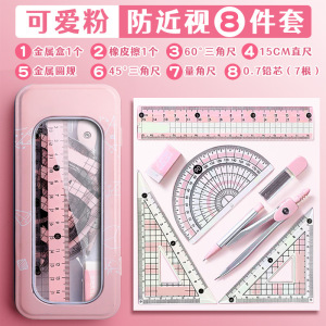 7件套圆规尺子套装多功能小学生用专业金属初中生小清新画图文具