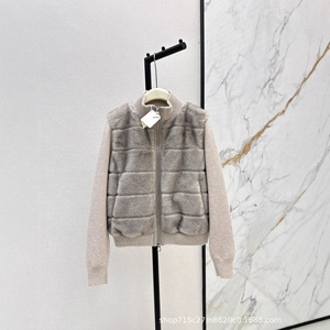 深圳南油25秋冬修身显瘦百搭针织拼接环保仿水貂皮草羽绒服外套