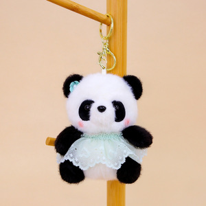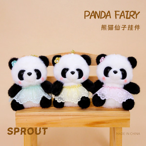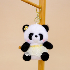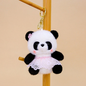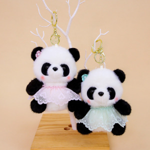 萌趣花裙子熊猫小挂件毛绒玩具熊猫公仔成都纪念品钥匙扣包包挂饰