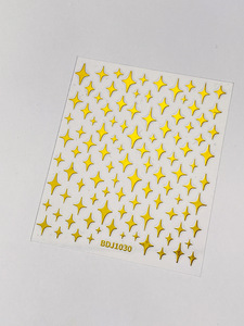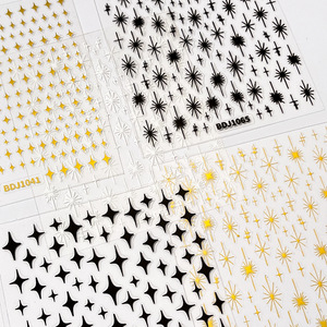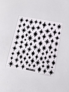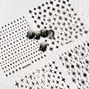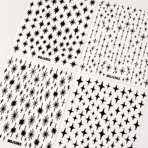 网红星芒美甲贴纸黑白朋克风金银色六芒星贴纸百搭薄透平面指甲贴