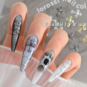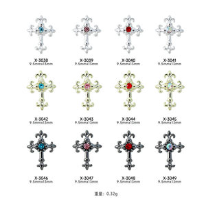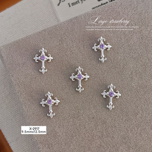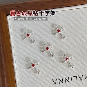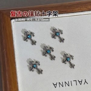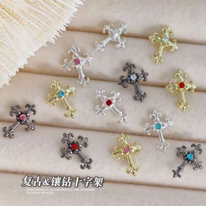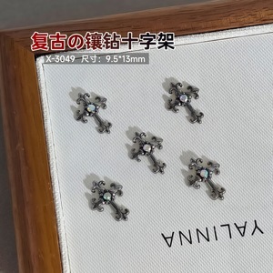 跨境新品十字架复古镶钻克罗心美甲饰品多色金属指甲装饰配件批发