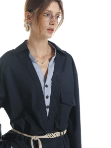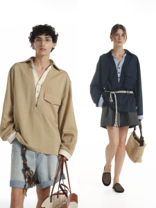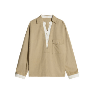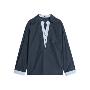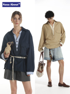NASA老钱风青少年潮流假两件纯色拼接高品质撞色宽松休闲长袖衬衫