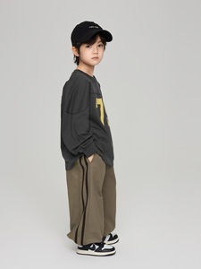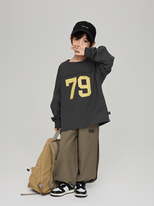 2025秋季新款男童洋气字母印花上衣儿童宽松长袖T恤纯棉打底衫潮