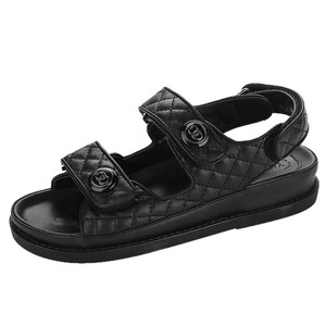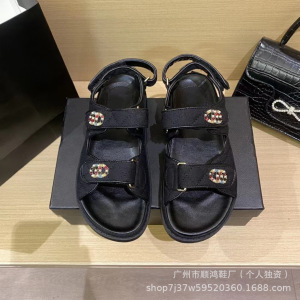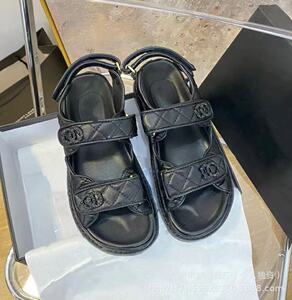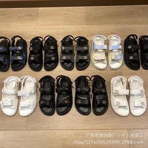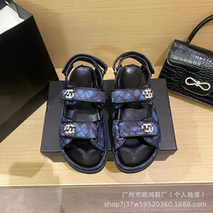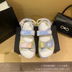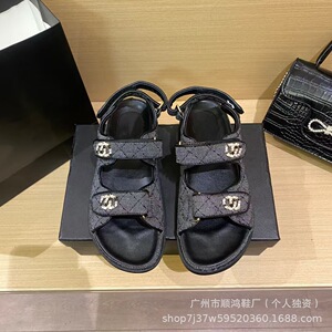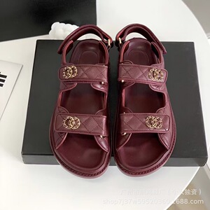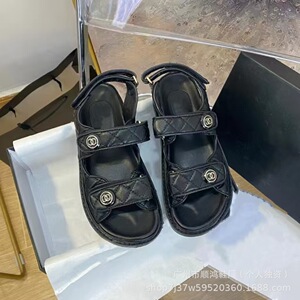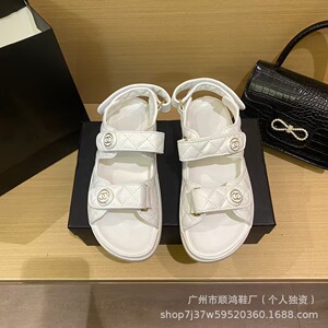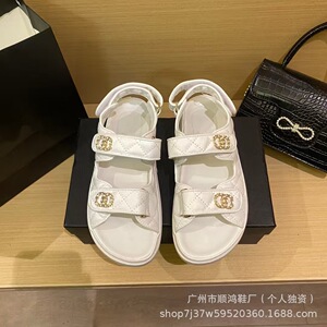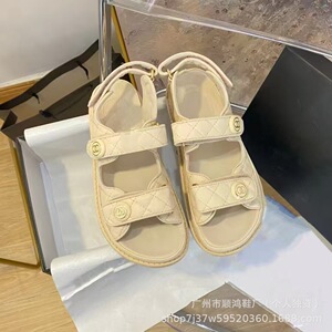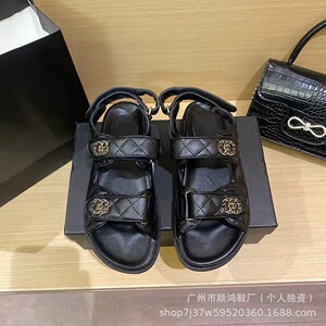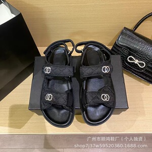 小香风魔术贴厚底真皮平底凉鞋女沙滩轻便罗马鞋