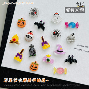 跨境爆款万圣节美甲饰品混款迷你卡通搞怪魔法幽灵南瓜diy指甲钻