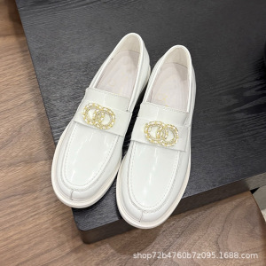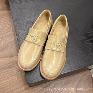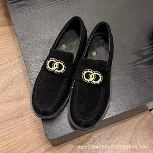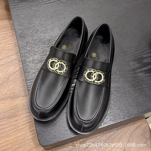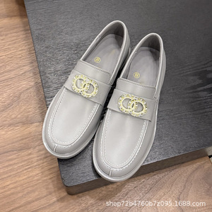法式牛皮金扣乐福鞋女2025新款百搭一脚蹬休闲懒人小皮鞋软底单鞋