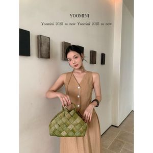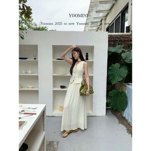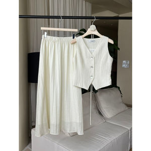 2025年夏季时尚韩系淑女v领无袖马甲背心+宽松高腰半身裙套装时髦