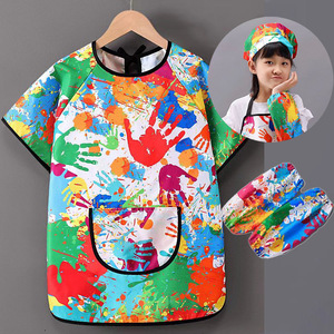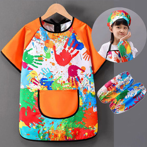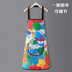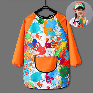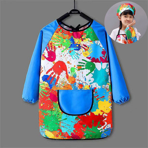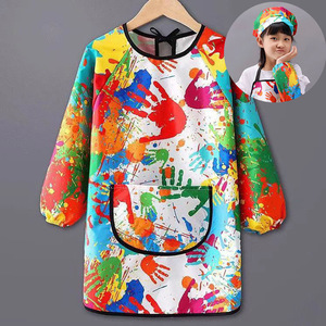 印字加长款油画罩衣防水耐脏婴儿童画室画画反穿衣幼儿园吃饭围裙