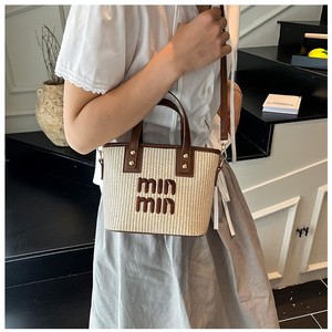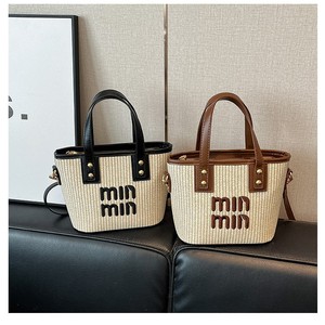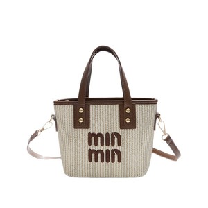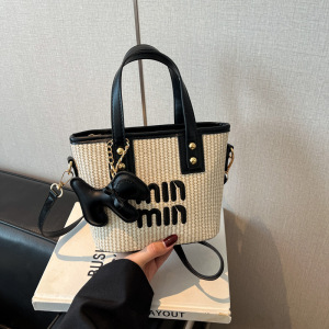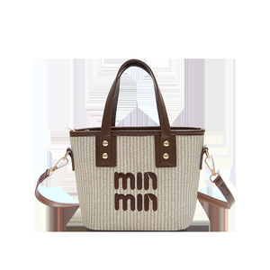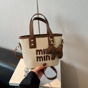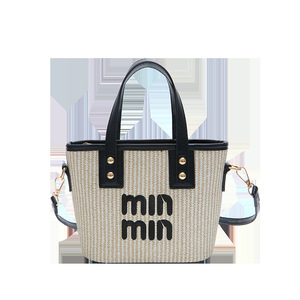 草编百搭女包2025新款时尚字母跨境女士大容量斜挎手提水桶女士包