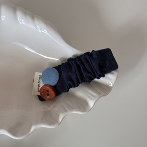 拼色纽扣复古牛仔褶皱bb夹发饰女设计感侧边刘海夹碎发夹发饰
