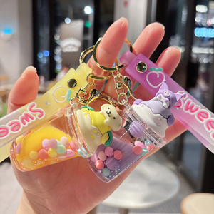创意入油三丽鸥彩豆奶茶钥匙扣可爱卡通流沙瓶精致包包挂件小礼品
