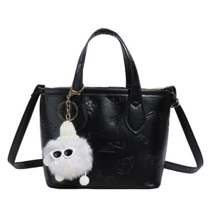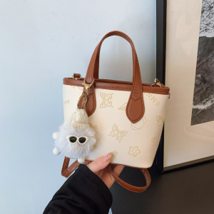 夏季新款压花女士手提包流行撞色水桶包可爱森系单肩包时尚斜挎包