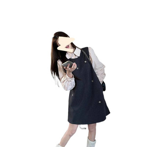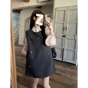 立体花朵甜美毛呢背心连衣裙女2025冬季新款叠穿减龄衬衫时尚套装