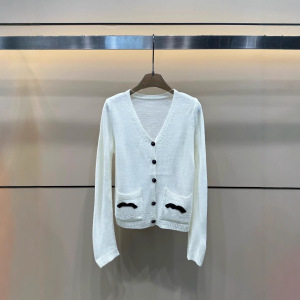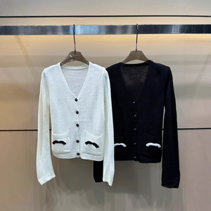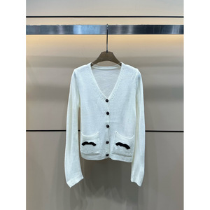 25年早秋新款香家logo纽扣百搭V领针织长袖单排扣开衫宽松女上衣