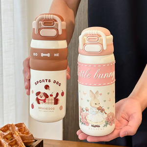 儿童保温杯316不锈钢女生高颜值2025新款学生便携水壶吸管水杯子