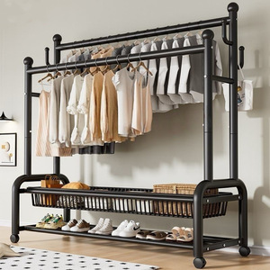 落地折叠伸缩晾衣架卧室加厚晾衣架室内外家用落地式双杆衣帽架