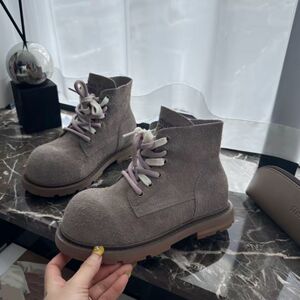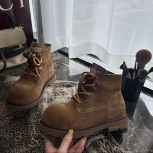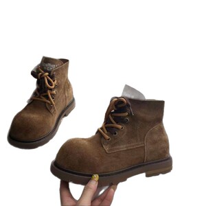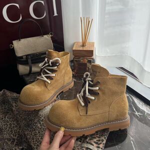 L玲L哒同款2025早秋真皮厚底马丁靴复古大头短筒短靴大黄靴女靴