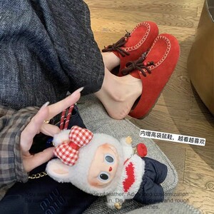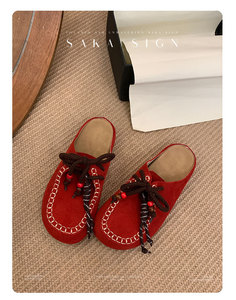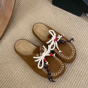 袋鼠勃肯鞋女串珠时髦撞色2025夏季外穿内增高半拖鞋女包头半拖鞋