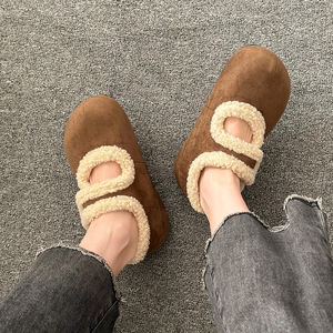 时尚百搭保暖魔术贴平底棉鞋女款2025新款冬季加绒玛丽珍毛毛鞋子