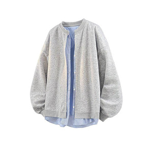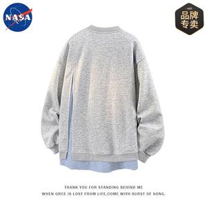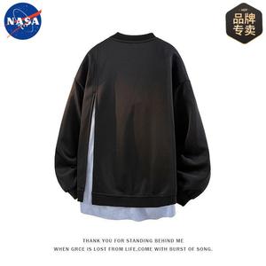 NASA品牌春秋季港风高级感假两件无帽长袖卫衣男士宽松休闲外套潮