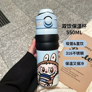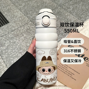 奶茶拉布布爆款保温杯高颜值耐高温不锈钢大容量车载吸管杯保温杯