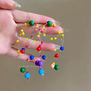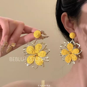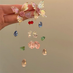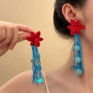 气质新娘耳环个性新中式长款红蓝撞色耳钉喜字设计感礼服旗袍晨袍