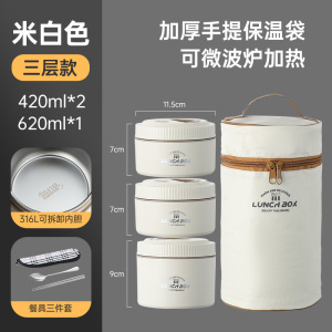 米白色-1460ml-三层【配密封袋+餐具三件套】
