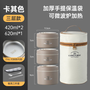 卡其色-1460ml-三层【配密封袋+餐具三件套】