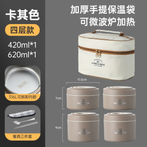 卡其色-2080ml-四层【配密封袋+餐具三件套】