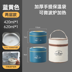 蓝黄色-1040ml-双层【配密封袋+餐具三件套】