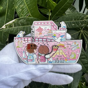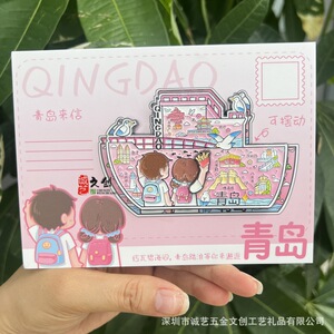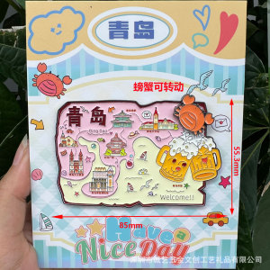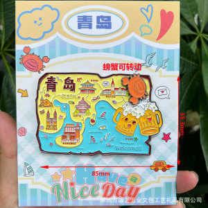青岛金属冰箱贴中国城市旅游景区纪念品青岛文创滑动冰箱贴磁贴