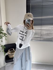 韩系2025早秋新款叠穿长袖T恤字母印花圆领长袖T恤修身显瘦上衣女