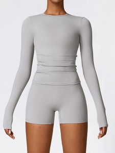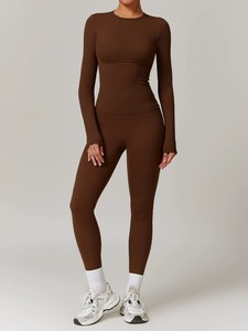 欧美女紧身磨毛高弹透气瑜伽速干健身服四季户外跑步运动提臀