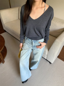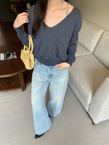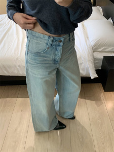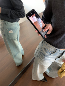 誉一新款2025秋季复古裂纹扎染牛仔裤女个性抓纹阔腿裤子女HC1309