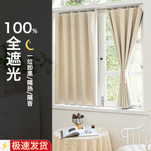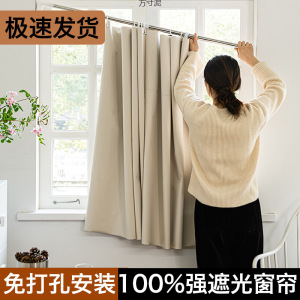 防晒窗帘卧室遮光布飘窗出租屋伸缩杆免打孔安装阳台遮挡帘子批发