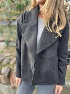 2025欧美秋冬新款跨境独立站女装批发纯色休闲翻领双排扣毛呢外套