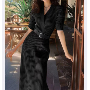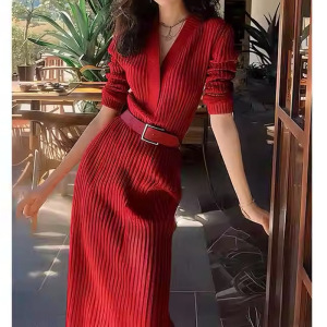 红色针织连衣裙2025早秋新款秋装气质高级感收腰长裙法式裙子女装