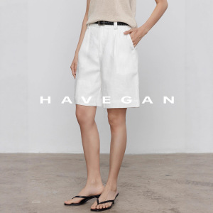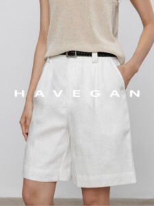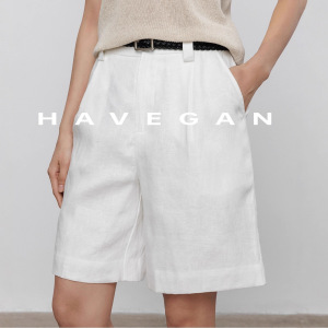 与间HAVEGAN/慵懒风通勤夏季亚麻休闲短裤2025新款气质宽松五分裤