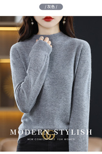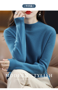 秋冬新款女半高领平面针织毛衣圆领套头百搭宽松显瘦纯色内搭毛衣