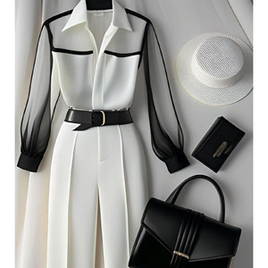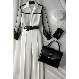 欧洲站爆款两件套年秋夏秋季新款洋气时尚长袖上衣+高腰裤子