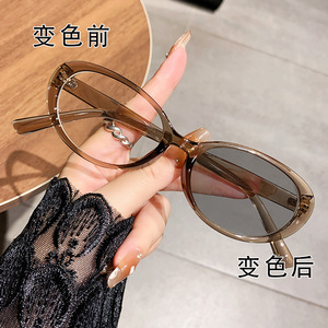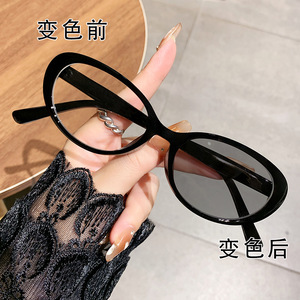 光感变色防蓝光近视镜时尚跨境书呆子极简风素颜显瘦素颜近视眼镜