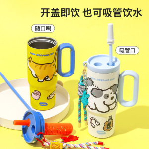 高颜值巨无霸316不锈钢保温杯车载大容量吸管水杯办公手柄冰霸杯