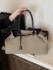 休闲大容量帆布包包女2025新款通勤百搭单肩腋下包撞色手提托特包