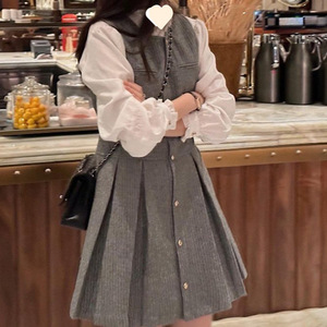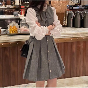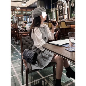 2025秋季新款chic女装气质高级感小个子灰色小香风衬衫连衣裙子套