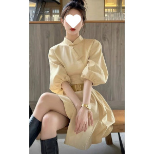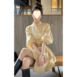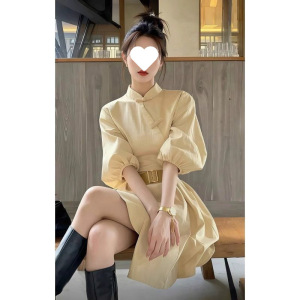 新中式国风立领衬衫连衣裙女2025年秋夏季新款高级感气质收腰裙子