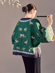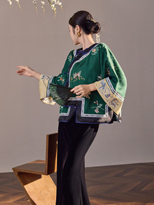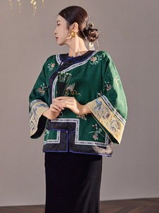 新中式复古高级刺绣圆领盘扣设计上衣女国风气质感宽松衬衫 N6025