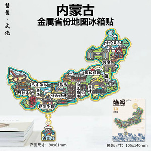 内蒙古省地区地图祥云城市集合网红热门木质金属磁吸旅游冰箱贴