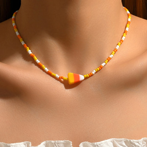 万圣节饰品可爱创意玉米糖串珠项链个性设计立体糖果玉米项链配饰