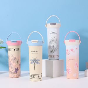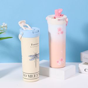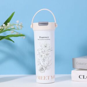 高颜值手提双饮直身杯便携316不锈钢保温杯茶水分离吸管花茶杯
